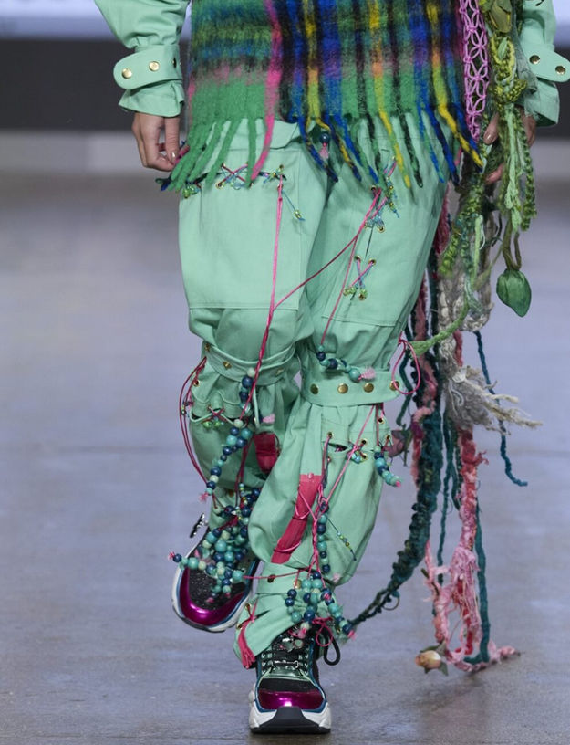 materials, and reworked textiles from previous collections, reinforcing the narrative of reinvention and individuality. With Roam, JimmyPaul invites the audience into a world where fantasy, fashion, and personal history collide, offering a tactile, emotional runway experience designed to spark curiosity, desire, and connection.