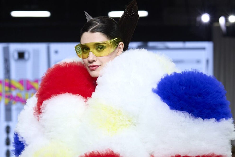 The comment was delivered half-seriously, half with laughter — yet it perfectly captured the spirit of the collection. Exaggeration, colour and character were central to the world Jimmy was building on the runway.